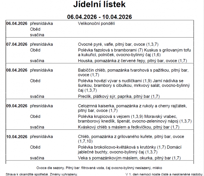 Změna jídelníčku vyhrazena.