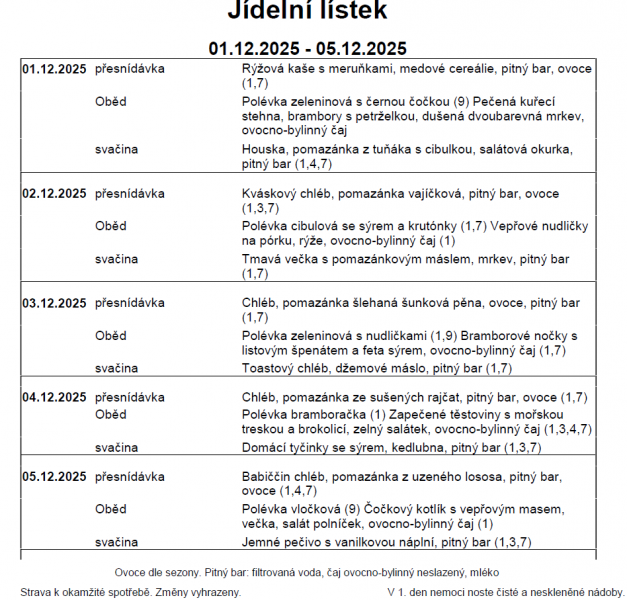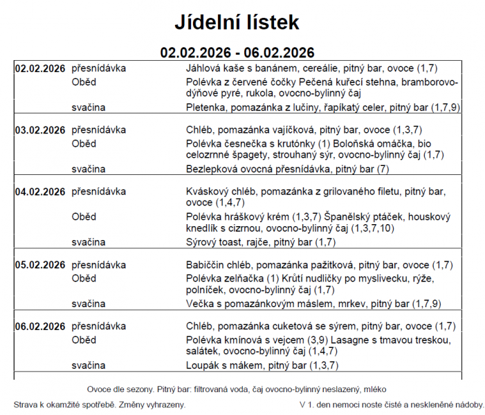 Změna jídelníčku vyhrazena.